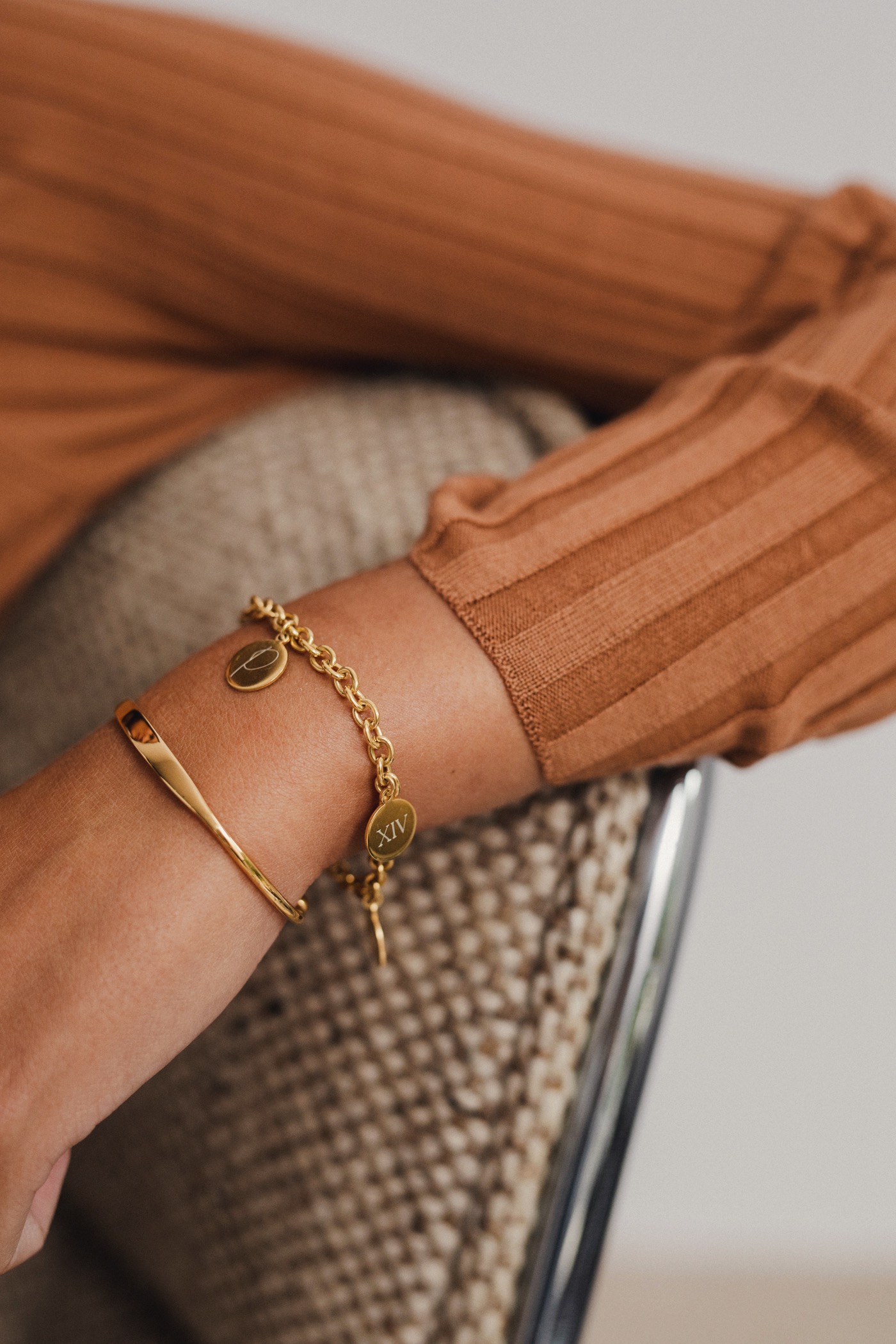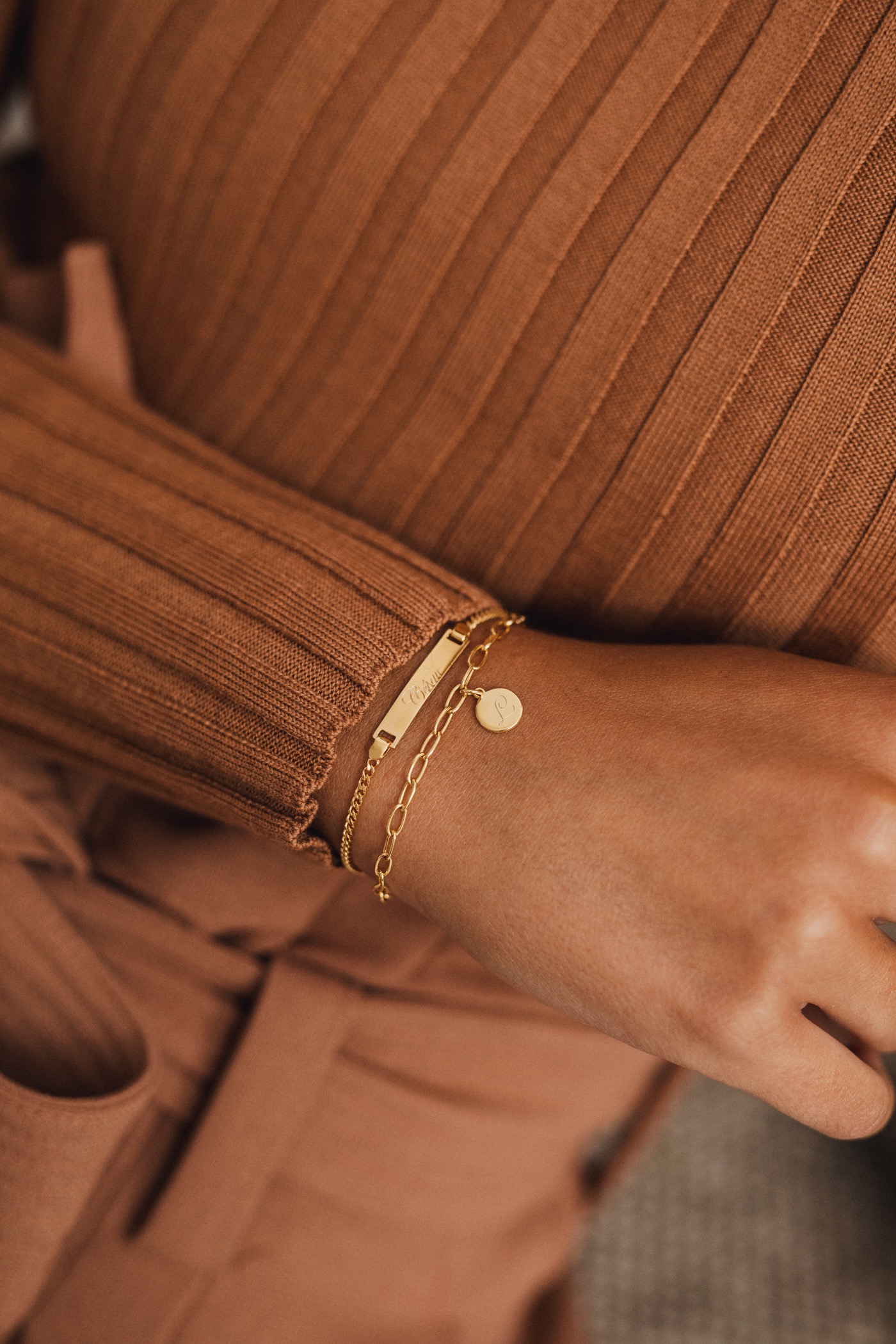 The Noma bracelet is part of our timeless collection. With its larger links and its engraving medallion, Noma can be worn alone or with other pieces like our Nayka or Gilda I bracelet. A must-have for your jewelry collection!